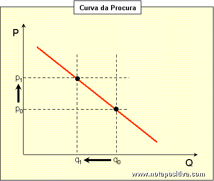 A curva da procura é não mais do que a representação gráfica da função procura, a qual traduz algebricamente a relação entre a quantidade procurada de um determinado bem e o seu preço de mercado. Como geralmente esta relação é negativa, a curva da procura terá, necessariamente, inclinação negativa, o que significa que quanto mais elevado o preço do bem, menor será a quantidade procurada desse mesmo bem. No exemplo abaixo, um aumento do preço do bem (P) de p0 para p1 resultou numa redução da quantidade procurada (Q) de q0 para q1.