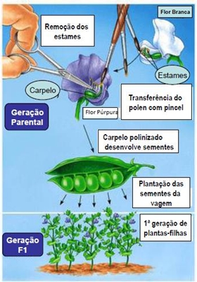 Os estudos que Mendel desenvolveu sobre a transmissão das características foram realizados em ervilheiras. Mendel escolheu estas plantas porque elas reuniam um conjunto de características que se adequavam ao trabalho que ele pretendia desenvolver: . Apresentavam um conjunto de características discretas, isto é, bem diferenciadas e constantes. . Cultivavam-se facilmente, originando várias gerações, com um elevado número de descendentes, num curto intervalo de tempo. . As flores possuem estames (órgão sexual masculino) e carpelos (órgão sexual feminino), permitindo a autopolinização . A fecundação pode ser realizada de forma controlada, isto é, pode efectuar-se polinização cruzada. Para se realizar polinização cruzada, removem-se os estames numa fase em que ainda não são capazes de produzir grãos de pólen e, posteriormente, fertiliza-se essa planta com o pólen proveniente de outra planta escolhida. Mendel teve o cuidado de utilizar linhas puras, isto é, plantas que, quando autopolinizadas, originam uma descendência igual entre si e igual aos seus progenitores (relativamente a uma determinada característica). Para obter linhas puras, Mendel cruzava ervilheiras idênticas em relação a uma determinada característica, durante verias gerações e eliminava sucessivamente aquelas que surgiam com uma variação dessa característica, diferente daquela que ele pretendia obter.