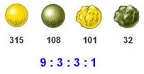 tipos de gâmetas origina 16 genótipos, com as seguintes proporções