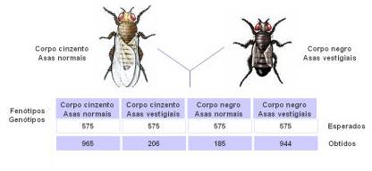 A descendência será qualitativamente igual à prevista numa segregação independente dos genes, mas quantitativamente, surgem em proporções alteradas dado que o crossing-over é meno frequente do que a transmissão em bloco dos genes em caus.