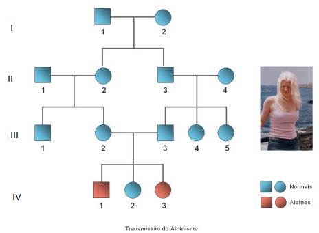 A análise da árvore genealógica permite constatar que progenitores fenotipicamente normais podem originar descendentes de ambos os sexos que manifestam o albinismo. Estes dados permitem inferir que se trata de uma característica autossómica recessiva, isto é, este gene está localizado num autossoma e o alelo mutante é recessivo em relação ao alelo normal. O alelo do albinismo é um alelo raro. Por esta razão, é mais provável que ele surja em heterozigotia em indivíduos da mesma família, pois têm ancestrais comuns. Assim os cruzamentos consanguíneos, isto é, entre indivíduos aparentados (como o caso dos indivíduos 2 e 3 da 3º Geração), aumentam a probabilidade de o alelo mutante surgir nos descendentes em homozigotia, manifestando-se a anomalia. Outros dois exemplos deste modo de transmissão são fenilcetonúria (anexos e livro página 112/113) e a surdez. Critérios que permitem, normalmente, identificarem um caso de transmissão de um alelo autossómico recessivo: . Os indivíduos de ambos os sexos são igualmente afectados. . Os indivíduos portadores (heterozigóticos) têm um fenótipo normal. . A maior parte dos indivíduos que manifestam a doença resultam de pais normais . Se os dois progenitores manifestam a doença, todos os seus descendentes apresentam a anomalia. . A anomalia pode não se manifestar durante uma ou mais gerações. Transmissão de características autossómicas dominantes Algumas anomalias com carácter hereditário podem resultar da expressão de genes dominantes. São exemplos destas anomalias a polidactilia, que se caracteriza pelo aparecimento de mais do que cinco dedos nas mãos e/ou pés. Também a doença de Huntington.