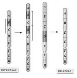 . Delecção – perda de material cromossómico (no centro ou na extremidade do cromossoma). . Duplicação – adição de um segmento cromossómico resultante do cromossoma homólogo, duplicando um conjunto de genes. . Translocação – transferência de material de um cromossoma para outro não homólogo (translocação simples) ou troca de segmentos entre dois cromossomas não homólogos (translocação recíproca)