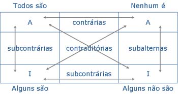 · A quantidade de uma proposição é definida por palavras a que chamamos quantificadores: indicam-nos se o sujeito se refere a todos os elementos do conceito ou apenas a uma parte deles (quantificadores universais: todo/nenhum/qualquer || quantificadores particulares: algum/poucos/certos/nem todos); Inferências imediatas “Quadrado lógico de oposição” entre proposições