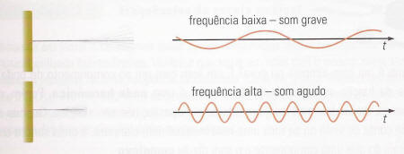 Quais são as propriedades do som? Altura . Permite distinguir um som grave de um som agudo. . Está relacionada com a frequência da onda sonora. . A onda correspondente a um som alto ou agudo tem maior frequência que a da onda de um som baixo ou grave.