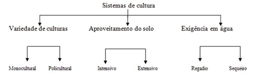 Agricultura Sistemas de cultura Definição: forma como a sociedade tira partido das suas terras. Abrange o conjunto de plantas escolhidas, o modo como as mesmas se associam e as técnicas ligadas à sua cultura.