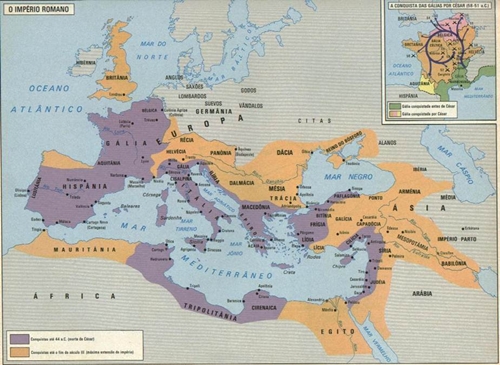 O Mundo Romano no Apogeu do ImpérioA Formação do Império Romano Cerca de 1000 a.C. estabeleceram-se na Itália vários povos indo-europeus entre eles os Latinos que no séc VIII a.C. fundaram Roma. A partir do séc V a.C., Roma começa a expandir-se. Em pouco mais de dois séculos, quase toda a Itália havia sido conquistada. Foi o início do processo de formação de um grande império. Roma continuou a sua expansão acabando por se confrontar com os Cartagineses com quem se guerrearam e acabaram por conquistar. Roma ficou a dominar parte do norte de África e a Itália e definiu o objectivo de dominar o Mediterrâneo e após a vitória sobre Cartago, os romanos voltaram-se para Oriente, atacando os prósperos reinos helenísticos e em meados do séc II a.C. os Romanos haviam conquistado a Grécia e a Macedónia e em seguida a Ásia Menor, a Síria e a Judeia. Após se terem apoderado de quase todos os territórios do litoral em volta do Mediterrâneo, os Romanos iniciam a sua expansão para interior. Nos sécs. II e I a.C. Júlio César e Augusto conquistaram a Península Ibérica, em I a.C. foi conquistada a Gália por Júlio César e pouco depois o Egipto transformou-se numa província romana e nos sécs. I e II d.C. foram conquistadas a Dácia e a Britânia. Os rios Reno e Danúbio tornaram-se as fronteiras naturais do mundo romano. O mar Mediterrâneo passou a ser o centro do império romano. Os romanos chamavam-lhe Mare Nostrum (Nosso Mar). A formação deste grande império só foi possível devido ao poderoso exército romano, muito organizado e com uma rigorosa disciplina.