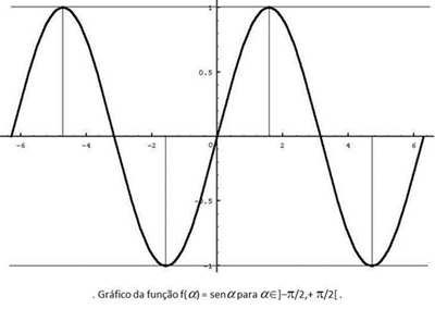 Domínios e contradomínios das funções trigonométricas inversas A função é não injectiva porque temos infinitos ângulos que possuem o mesmo valor da função seno. Não nos é então possível definir uma aplicação inversa para a função seno, porque assim para um valor do domínio dessa aplicação existe uma infinidade de valores possíveis. Pode acontecer que vários elementos do domínio da função dêem origem ao mesmo valor, mas cada elemento do domínio só pode originar um único valor. No entanto, é possível definir uma função inversa da função seno para um domínio restrito em que haja injectividade, isto é, para o qual a cada elemento do domínio corresponda um valor que não é imagem desse, e de nenhum outro, elemento do domínio. O arco seno tem domínio [–1, +1], o contradomínio do seno: o argumento a só pode tomar valores dentro desse intervalo. O contradomínio é uma restrição do domínio do seno: [–p/2, +p/2]. Inverso do co-seno (arccos) A função coseno não é injectiva. O intervalo usado é [0; +p], e os valores permitidos para esta função situam‑se no intervalo [–1, +1], pois o coseno só toma valores neste intervalo. O arco coseno tem por domínio [–1, +1]: é forçoso que –1 £ a £ 1. Inverso da tangente (arctg) A tangente é periódica, de período p, sendo forçosamente não injectiva. O intervalo que é usado para definir esta função é ]– p/2, +p/2[. Note-se que os extremos do intervalo, –p/2 e +p/2, são excluídos, pois nesses pontos a tangente não está definida (toma valores infinitos). Inverso da co-tangente ( arccotg) Tem período: p. O intervalo de valores tomado pelo arco co-tangente é ]0; +p[, e pode tomar qualquer valor real. Os extremos do domínio da função arco co-tangente são excluídos porque nesses pontos a co-tangente não está definida (tem valor infinito).