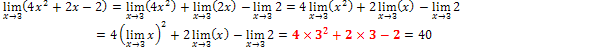 Muitas funções podem ser expressas como somas, diferenças, produtos e quocientes de outras funções, pelo que é útil conhecer algumas regras operatórias com limites. Regras operatórias com limites