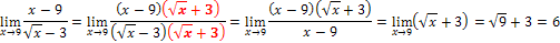Nesta situação a técnica adoptada, consiste em multiplicar e dividir a expressão inicial pelo conjugado. Aparentemente, vamos tornar a expressão mais complicada, mas este artifício permite-nos “levantar” a indeterminação: