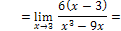Neste caso, a solução é escrever como um produto de factores o numerador e o denominador (isto é, factorizar a expressão). Para tal podemos: Colocar um termo em evidência; Usar os casos notáveis da multiplicação; ou Usar a Regra de Ruffini (repare que 3 é raiz do numerador e do denominador)