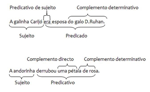23) Funções sintácticas Amália deu um dote a Joaquina. Sujeito Predicado “Deu” – verbo “Um dote” – complemento directo “A Joaquina” – complemento indirecto Complemento circunstancial de tempo: . Hoje Amália deu um dote a Joaquina. Complemento circunstancial de modo: . Estranhamente Joaquina recebeu um dote de Amália. Complemento circunstancial de lugar: . Amália deu no jardim um dote a Joaquina. Complementos circunstanciais de: . Causa . Meio . Dúvida . Instrumento 24) Predicativo de sujeito Predicativo de sujeito – palavra ou palavras que caracterizam o sujeito e completam o sentido do verbo. (verbos que precisam desta forma sintáctica). Ex: Ele continuo triste. Ela vem atrasada. 25) Predicativo de complemento directo Tal como o sujeito, o complemento directo pode igualmente ter um predicativo. Este é colocado, geralmente, a seguir ao complemento directo, caracterizando e concordando com ele em género e número. Verbos introdutores do predicado de complemento directo: Julgar, considerar, ter, supor, achar, nomear, declarar, tornar, apelidar, chamar, encontrar, eleger, pintar, representar, constituir, coroar, crer, escolher, fazer, instituir, ver… Exemplo: Predicado ↓ A turma elegeu a Inês delegada de turma. “ A turma” – sujeita “Elegeu” – verbo “A Inês” – complemento directo “Delegada de turma” – predicativo de complemento directo. 26) Vocativo Ó Duarte, acode-me. ↓ Vocativo Cuidado, não caias, Duarte! ↓ Vocativo Vocativo – é a função sintáctica desempenhada por uma palavra ou expressão que numa frase interpela, chama ou invoca directamente alguém ou algo personalizado. O vocativo corre em frases imperativas, interrogativas e exclamativas, sobretudo em situações de diálogo. Exemplo: Ó Fábio, despacha-te. Aonde vais ó Fábio? Fixes-te um belo passeio Fábio! 27) Complemento determinativo Expressão constituída por um nome ligado pela preposição [de] de outro nome, caracterizando-o mediante relações de parentesco, posse, tempo, matéria ou indicando o objectivo de uma acção ou sentimento. Exemplos: