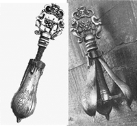 A Pêra O nome é dado pelo formato da peça. É uma peça que expandia progressivamente as aberturas onde era introduzida. Esse instrumento forçava a boca, o ânus ou a vagina da vítima. Era usada para punir os condenados por adultério, ou união sexual com Satã, e também para blasfémias ou hereges.