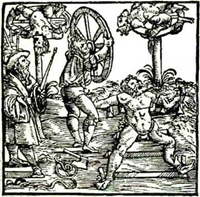 A Roda Era uma das mais utilizadas formas de tortura da antiguidade. Existem evidências de sua utilização na Inglaterra, Holanda e Alemanha entre o ano de 1100 a 1700. Podia ser usada de duas formas: Eram quebrados os ossos das juntas da vítima (pulsos, joelhos, cotovelos, ombros), para que essa pudesse ser "trançada" entre os raios da roda. Estando a vítima nua e com os membros trançados, a roda era suspensa e ficava exposta em praça pública ou em locais chamados de docas de execução. As vítimas agonizavam até a morte, muitas vezes com os ossos expostos.