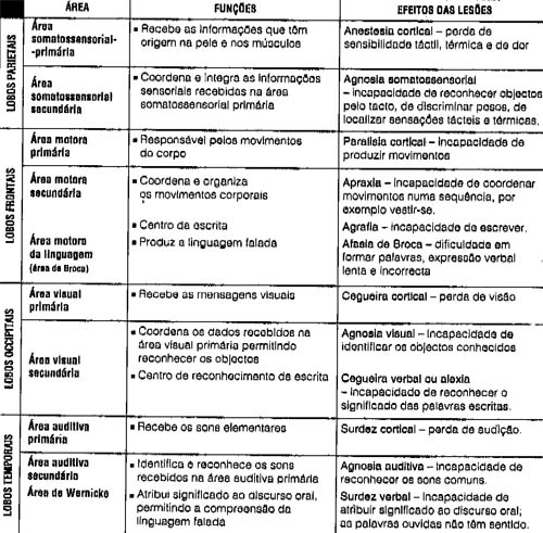 10. Localizar e descrever as funções das áreas corticais e descrever os efeitos das lesões nessas áreas.