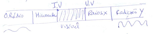 A cada radiação corresponde um valor de energia específico. As de maior energia no visível são as de cor violeta e as de menor energia são as vermelhas. O conjunto de todas as radiações visíveis ou não é o ESPECTRO ELECTROMAGNÉTICO. (MOSTRAR ACETATO).
