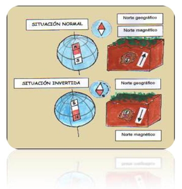Paleomagnetismo e inversões de polaridade – Material constituinte do núcleo externo que se encontra no estado líquido, encontra-se em movimento de rotação. Este movimento cria uma corrente eléctrica, que origina o campo magnético terrestre. Paleomagnetismo – Registo magnético preservado nas rochas antigas permite saber a direcção e a intensidade do campo magnético no passado. Anomalias magnéticas - O campo magnético terrestre pode apresentar variações de um curto período de tempo (dia, mês, anos) que podem fazer variar os valores da intensidade, declinação e inclinação magnética. Em relação aos valores teóricos, as medições do campo magnético efectuadas num dado local podem apresentar grandes desvios. Por exemplo, a presença de jazigos de ferro pode fazer aumentar significativamente os valores do campo magnético num dado local, originando-se uma anomalia. Quando estas anomalias apresentam um valor maior relativamente ao valor médio da região, diz-se que se trata de uma anomalia positiva; pelo contrário, quando o valor obtido é menor que o valor esperado, diz-se que se trata de uma anomalia. negativa.