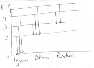. Se a risca parte de um nível qualquer para o nível 1 (estado fundamental), pertence à série de Lyman – radiação UV. . Se a risca parte de um nível qualquer para o nível 2, pertence à série de Balmer – radiação visível. . Se a risca parte de um nível qualquer para o nível 3, pertence à série de Paschen– radiação IV. MODELO QUÂNTICO DO ÁTOMO