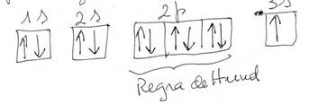 Para o 11Na 1s2 2s2 2p6 3s1 ou 1s2 2s2 2px2 2py2 2pz2 Através de diagramas de caixas: