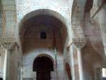 Arco peraltado (ao fundo) na Igreja de San Pedro de la Nave em Espanha . Arco policêntrico: formado por diversas curvas de centros diferentes. . Arco polilobado: Intradorso formado por diversos lóbulos. Foi importado do Oriente e também usado na arquitectura árabe. Crê-se que representa simbolicamente o mundo ou céu de onde nascem outros mundos ou céus.