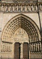 Portal com arco quebrado da Catedral de Notre-Dame de Paris em França. . Arco segmentar: composto por segmento de circunferência em que o centro está colocado sob a linha de arranque do arco. O raio tem uma dimensão muito maior do que o vão, ou seja, o arco descreve um ângulo inferior a 180º. . Arco em talude: Intradorso assenta em plano horizontal e Extradorso em plano diagonal. . Arco trilobado: Intradorso formado por três lóbulos de dimensões não obrigatoriamente iguais.