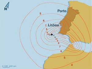 Fig. 3 – Carta de Isossistas simplificada do Terramoto de 1755 Sismógrafo Instrumento de grande sensibilidade que regista os movimentos da superfície terrestre, permitindo saber a hora, a duração e a magnitude de um sismo.