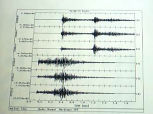 Fig. 5 – Sismograma. Registo feito pelo sismógrafo Escala de Ritcher (1)