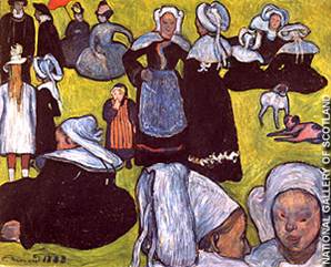 Exemplo da pintura de Emile Bernard,’ Mulheres Britânicas num campo relvado’ Sintetismo