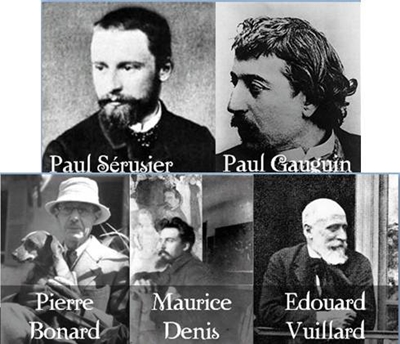Exemplo de Sintetismo. Obra de Fellix Valloton Les Nabis Les Nabis, ou simplesmente Nabis, foi um grupo de jovens artistas pós-impressionistas vanguardistas da última década do século XIX. Paul Sérusier impulsionou Les Nabis, arranjou o nome e a grande influência, Paul Gauguin. A palavra Nabi deriva do árabe, da palavra profeta. Pierre Bonnard e Edouard Vuillard tornaram-se os mais conhecidos do grupo, mas na altura estavam um pouco afastados dos restantes membros. Conheceram-se na Académie Julian, e depois em casa de Paul Ranson, e chegaram à conclusão que: «uma obra de arte é o produto final da expressão visual e sentimental do artista». Receberam muitas influências simbolistas e abriram caminho às obras abstractas prematuras e à arte não figurativa. Entre o grupo estava Maurice Denis, cujos trabalhos jornalísticos fizeram publicidade a Les Nabis. Tinha uma definição para arte produzida pelo gupo, que se aproximava bastante da realidade — "uma superfície lisa coberta de cores organizadas". As suas Théories (1920; 1922) levaram a arte Nabis muito para além da sua extinção devido ao Fauvismo e Cubismo.