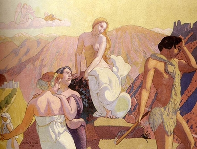 Exemplo da pintura de Redon, ‘Retrato de Violette Heymann’. Maurice Denis Maurice Denis nasceu a 25 de Novembro de 1870. Era jornalista e pintor. Escreveu as proposições (princípios) dos Nabis em : Teorias do Simbolismo de Gaugin a uma Nova Ordem Clássica As suas obras têm inspiração oriental e foi mais conhecido pela pintura de murais. No entanto, este artista não é totalmente reconhecido pelas suas obras, grande parte do seu sucesso deve-se ao trabalho que realizou com os Nbis, este era que os promovia através da imprensa, onde trabalhava.