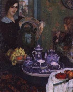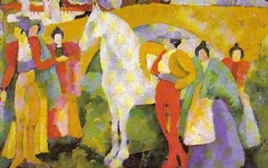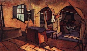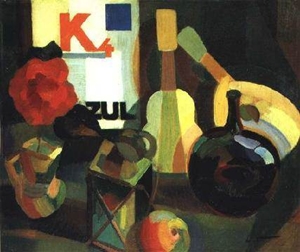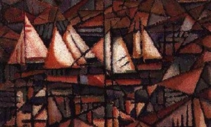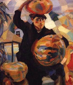 1910 A partir de 1911, o pintor recupera o vocabulário decorativo dos seus desenhos, concentrando-se na definição de um estilo pessoal. A pintura "Os Galgos" poderá ser considerada um ponto de chegada ao seu estilo pessoal.