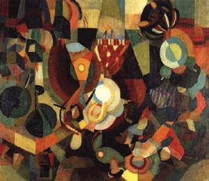 "As três abóboras" - 1919 Outros Artistas: Pintores: . Sonia Delaunay . Maria Helena Vieira da Silva . Francis Smith Música: . José Vianna da Motta Literatura: . Fernando Pessoa . Mário Sá-Carneiro Em suma: As principais características são: . Cores vibrantes . Geometrização das formas; . Utilização da geometria como elemento estruturante; . Utilização de várias técnicas (pasta de óleo, areia, colagens, letras) planos fragmentados; . Transmitem uma sensação de movimento; Outros Trabalhos Relacionados
