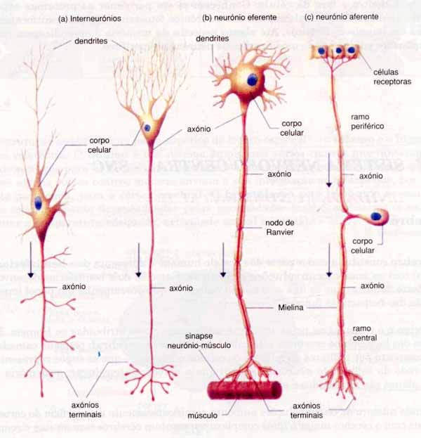 Fig-3 a)interneurónios; b) neurónio eferente; c) neurónio aferente