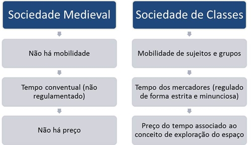 inerente à responsabilidade individual – LABOR SÉC XI . Tabus Baixo estatuto – Artesãos, mercadores e outros Profissões proibidas – Negotia Illícita Ex. Usura, prostituição Profissões lícitas mas desonestas – inhonesta mercimonia Ex. Barbeiros, médicos, cortadores,… ( Tabu do sangue ) Profissões indecorosas – artes indecorarae Ex. Operários têxteis, cozinheiros,… ( tabu da impureza ) Profissões vis – Vilia officia Ex. Mercadores, usurários. ( Tabu do dinheiro ) Já na Grécia o trabalho dos artesãos, comerciantes, banqueiros, etc. é considerado indigno de um cidadão. Ele é dependente da clientela. É neste período que o trabalho agrícola se reveste de dignidade. . TECHNÉ – ( provém da cultura grega ) Aplica-se às tarefas dos sujeitos livres mas sem direito à cidadania. O artífice grego, ao contrário da época de ouro das corporações estava limitado à detenção de uma habilidade manual ou operacional ( poiésis ) Pertencia ao cliente o domínio da ideia e da forma ( eidos ) O trabalho feminino tinha a mesma designação Remete para o termo praxis que é de ordem mais externa (os resultados mais visíveis do acto interior) · TECHNÉ – Evolução do conceito Na Alta Idade Média, o termo TECHNÉ será sujeito a novas mutações; A função secreta e criativa passará a ser caracterizadora das funções do Mestre-artesão; O termo Mestre é derivado da dupla origem desta vertente secreta; MINUS e MINISTER ( função menor ) – São os aprendizes e os companheiros do Magister superior. SÉC XIII . A ciência e o tempo ( dons de Deus ) passam a ser remuneradas ; . A ciência passa a ser ministrada por professores; . Os mercadores passam a ser recompensados pelos riscos inerentes à comercialização; . Estas actividades passam de ilícitas a lícitas. Com as transformações económicas os ofícios torna-se progressivamente no motor da evolução e formam as corporações; . O fortalecimento das corporações a nível ideológico e económico fez do trabalhador de ofício o novo símbolo de trabalhador livre; . O domínio do saber-fazer, ciosamente mantido em segredo e o crescimento acelerado da procura de produtos manufacturados, colocou o artesão na categoria de homem livre e não dependente de outrem para subsistir. SÉC XVIII . Identificam imediatamente o estatuto social do sujeito SÉC XIX . É uma actividade que se exerce por conta de outrem, em troca de um salário, segundo as formas e os horários fixados por aquele que contrata, com vista à realização de fins não escolhidos pelo trabalhador. SÉC XXI . O termo “ trabalho “ designa apenas uma situação económica estrita e livremente acordada Podemos analisar no esquema abaixo as diferenças a sociedade medieval e de classes (hoje), vejamos: