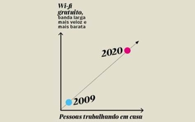 contou como deverá ser o trabalho em 2020. Qual força influenciará esse novo trabalho? R: A queda nos custos da comunicação terá efeitos profundos que ainda não foram bem entendidos ou avaliados. Muitas outras coisas que poderíamos pensar que são factores independentes são, na verdade, permitidos pela queda dos custos na transmissão de dados.