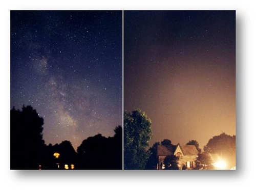 . Como consequência deste mal dos nossos dias, os especialistas destacam: a surdez, a irritação das pessoas, o «stress», a alteração do sistema nervoso, a fadiga, a alucinação, as doenças psíquicas... . Actualmente, os centros psiquiátricos acolhem não só alcoólicos e intoxicados, mas também um grande número de vítimas da poluição sonora. . Reacções generalizadas de stress e aumento do ritmo cardíaco. São capazes de interromper a digestão e causar dores no estômago, náuseas, dores de cabeça, irritabilidade, ansiedade, nervosismo, insónia, perturbações auditivas graves, fadiga, redução de produtividade, aumento dos números de acidentes, de consultas médicas. Podemos contribuir no combate à poluição sonora. Basta: . Evitar ruídos desnecessários; . Não ouvir música com um volume de som muito alto; . Falar num tom moderado nos locais públicos e nos hospitais. Dá-se o nome de poluição visual ao excesso de elementos ligados à comunicação visual (como cartazes, anúncios, propagandas, banners, totens, placas, etc) dispostos em ambientes urbanos, especialmente em centros comerciais e de serviços. Acredita-se que, além de promover o desconforto espacial e visual daqueles que transitam por estes locais, este excesso tira a beleza das cidades modernas, desvalorizando-as e tornando-as apenas um espaço de promoção do fetiche e das trocas comerciais capitalistas. Acredita-se que o problema, porém, não é a existência da propaganda, mas o seu descontrole. Também é considerada poluição visual algumas actuações humanas sem estar necessariamente ligada a publicidade tais como o grafite, as edificações com falta de manutenção, o lixo exposto não orgânico, e outros resíduos urbanos. A poluição visual degrada os centros urbanos pela não coerência com a fachada das edificações, pela falta de harmonia de anúncios, logótipos e propagandas que concorrem pela atenção do espectador, causando prejuízo a outros, etc. O indivíduo perde, em um certo sentido, a sua cidadania (no sentido de que ele é um agente que participa activamente da dinâmica da cidade) para se tornar apenas um espectador e consumidor, envolvido na efemeridade dos fenómenos de massas. A profusão da propaganda na paisagem urbana pode ser considerada uma característica da cultura de massas pós-moderna. Certos municípios, quando tentam revitalizar regiões degradadas pela violência e pelos diversos tipos de poluição, baixam normas contra a poluição visual, determinando que as lojas e outros geradores desse tipo de poluição mudem suas fachadas a fim de tornar a cidade mais harmónica e esteticamente agradável ao usuário. Poluição luminosa é o tipo de poluição causada pela luz excessiva ou obstrutiva criada por humanos. A poluição luminosa interfere nos ecossistemas, causa efeitos negativos à saúde, ilumina a atmosfera das cidades, reduzindo a visibilidade das estrelas e interfere na observação astronómica. Este tipo de poluição é considerado um efeito colateral da industrialização. A fonte de poluição neste caso consiste das luminárias internas e externas de residências e outros estabelecimentos, anúncios publicitários, iluminação viária, sinalização aérea e marítima, bem como toda outra fonte artificial de luz. A poluição luminosa é mais intensa em áreas densamente povoadas e fortemente industrializadas na América do Norte, Europa e Japão. Com os avanços das viagens espaciais privadas, a perspectiva de outdoors surgindo no futuro próximo tem levantado a preocupação que tais objectos possam se tornar uma nova fonte de poluição luminosa.