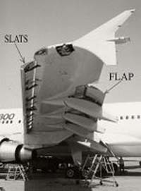 Perfil de uma asa de um avião evidenciando as partes aerodinâmicas constituintes.
