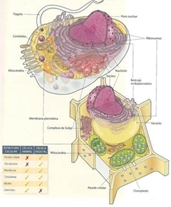 Figura 1: Comparação entre a célula animal e a célula vegetal. Contudo para observarmos as células é necessário um microscópio (aparelho que produz uma imagem ampliada e de grande precisão do objecto em estudo.