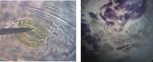 neutro água iodada Na 2º Experiência (mais dificuldade em observar as células pois são em menor número e tamanho) :