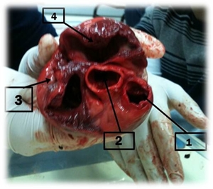 Legenda: 1 – Artéria Pulmonar 2 – Artéria Aorta 3 – Aurícula Esquerda 4 – Aurícula Direita 2 - MORFOLOGIA INTERNA