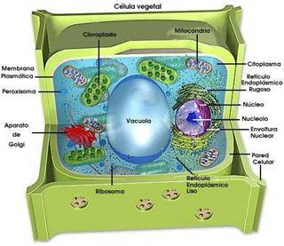 Fig. 14 Célula Vegetal Parede celular A parede celular é uma película que envolve as células e tem como principal função dar-lhes suporte e protegê-las. Serve também para possibilitar a passagem de nutrientes e contribui para a manutenção das células, não permitindo assim que estas se deformem. É uma estrutura permeável, mas não controla as substâncias que penetram o interior das células. A parede celular é constituída essencialmente por celulose.