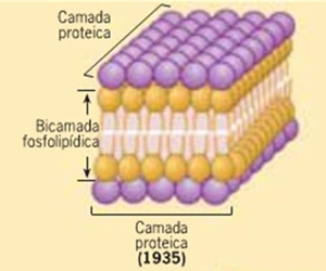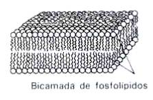 Fig. 8 Bicamada fosfolipídica Esta bicamada funciona como uma barreira para grande parte das moléculas solúveis em água. Mais tarde, Davson e Danielli propuseram que a bicamada fosfolipídica seria revestida tanto interna como externamente por uma camada de proteínas.