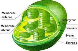 Fig. 16 Cloroplastos Constituintes básicos Para além das características estruturais e funcionais, a célula também possui características ao nível da sua formação molecular. Todos os seres vivos são constituídos por células que por sua vez são constituídas por macromoléculas. A Bioquímica é a disciplina que se dedica ao estudo da química dos seres vivos, e consequentemente ao estudo das biomoléculas. Macromoléculas são moléculas orgânicas de grandes dimensões e são compostas por elementos químicos como o Carbono (C), o Hidrogénio (H), o Oxigénio (O), entre outros. As biomoléculas são compostos químicos criados pelos seres vivos que estão presentes nas células e têm funções energéticas, estruturais, enzimáticas, de transporte de informação ou de armazenamento. Macromoléculas Biológicas As biomoléculas dividem-se em dois grandes tipos: biomoléculas orgânicas e em biomoléculas inorgânicas. Para a formação destes polímeros, é necessário que vários monómeros se unam e formem cadeias. A este processo dá-se o nome de polimerização. Após a junção de dois monómeros, ocorre a formação de uma molécula de água. Se, pelo contrário, um polímero se desdobrar nos monómeros que lhe deram origem, a reação designa-se despolimerização. Moléculas orgânicas As moléculas orgânicas são compostos sintetizados pelos seres vivos e que entram na estrutura e no funcionamento da matéria viva. As mais importantes são os prótidos, os ácidos nucleicos, os lípidos e os glícidos. Lípidos Os lípidos constituem um enorme e diversificado grupo de compostos que são designados também por gorduras. Os monómeros dos lípidos são os ácidos gordos e o glicerol. Estas substâncias são insolúveis em água, devido às suas moléculas serem essencialmente hidrocarbonadas, ou seja, hidrofóbicas. Os lípidos são compostos ternários, formados apenas por Carbono, Oxigénio e Hidrogénio. Os lípidos podem ser agrupados de acordo com a função que desempenham. Lípidos de reserva Os lípidos de reserva são geralmente as gorduras, que compõem as reservas energéticas. São constituídos por uma cadeia de átomos de carbono, que se finaliza com um grupo carboxilo. O glicerol e os ácidos gordos são os componentes fundamentais dos lípidos de reserva.