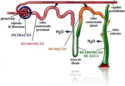 Filtração: pressão hidrostática do sangue sobre as paredes do glomérulo. Reabsorção: água, NaCl, glicose, aminoácidos. Secreção: algumas moléculas estranhas passam direto do sangue para os túbulos. Ex.: drogas, remédios.