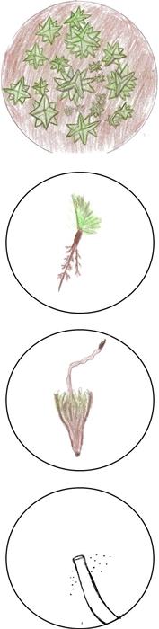 Fig. 1 – Ciclo de vida do musgo 2.3. Distribuição em termos de habitat Como já foi referido anteriormente, o musgo vive preferencialmente em solos húmidos e ambientes sombrios.