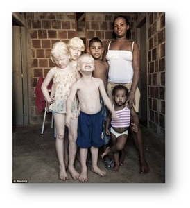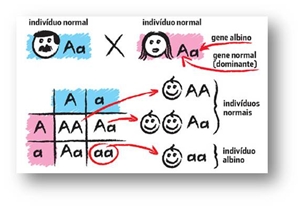 Entre todas as mutações génicas existentes vou abordar um pouco do Albinismo: Albinismo 1. Causas da doença: As causas do albinismo variam de caso para caso, assim como a intensidade dos seus efeitos. Geralmente o albinismo é causado por falhas ao acaso (aleatórias) ou herdadas em um ou mais genes que regulam a produção de melanina (proteína responsável pela pigmentação e a primeira protecção do corpo contra os raios ultravioletas). Uma pessoa pode ser portadora do gene que causa a doença e não ser albina (designação atribuída a seres que possuem albinismo). Contudo, na fecundação, se os dois genes que contem a mutação se juntarem, as células do bebé em formação não são programadas para produzirem melanina. Ou seja duas pessoas com o gene da doença, mas não sendo albinos, poderão eventualmente ter filhos albinos. O albinismo decorre de um bloqueio incurável da síntese de melanina devido à ausência da enzima tirosinase nos melanócitos (célula dendítrica que produz melanina) os quais estão, entretanto, presentes em número normal, mas são incapazes de produzir o pigmento. 2. Manifestações: Os sintomas podem ser subdivididos nos diferentes graus de Albinismo: Albinismo Completo: - A pele e os pêlos de cores branca, e os olhos de tom rosado; - Movimento rápido dos olhos; - Fotofobia (evitam luminosidade porque causa desconforto); - Diminuição da perspicácia visual; - Cegueira Funcional Albinismo Ocular: - A cor da íris pode variar de azul a verde e, em alguns casos, castanho-claro; - a fóvea (responsável pela formação da imagem que será transmitida ao cérebro) tende a desenvolver-se menos, pela falta da melanina, que cumpre um papel central no desenvolvimento do olho, nos fetos. Albinismo em geral: - Ausência de pigmentos na pele, nos olhos e na íris; - Ausência de pigmentos irregulares na pele; 3. Incidência A incidência do albinismo é mais comum nos povos africanos. Qundo um dos pais possui o gene recessivo do albinismo, existe a probabilidade de transmissão de 25% em cada gravidez. No caso de um filho nascer saudável, há 50% de possibilidade de este ser portador do gene e gerar filhos com albinismo. 4. Consequências As pessoas que são afectadas por esta mutação génica que provoca albinismo, tendem a uma maior probabilidade de sofrerem de cancro da pele ou de cegueira. As pessoas ou animais que sofrem da doença têm muito pouco ou mesmo nenhuma pigmentação nos seus olhos, pele ou cabelo. Os cabelos ou são totalmente brancos ou de um amarelo muito pálido. Na sua visão a íris é extremamente clara podendo os olhos chegarem a ser rosados, o que provoca uma grande dificuldade de visão em lugares bastante luminosos, sendo obrigados a usarem óculos escuros e graduados devido à sua sensibilidade à luz. A pele dos albinos, sendo muito clara devido à carência de melanina, com a radiação solar pode vir a desenvolver cancro da pele caso os doentes não estejam devidamente protegidos com protector solar ou roupas adequadas. Pois a exposição solar não produz o efeito bronzeador, mas sim queimaduras de graus variados. 5. Tratamento Quanto ao tratamento desta doença não se encontram muitas alternativas. Está na consciência de cada albino prevenir-se em relação à sua exposição solar. Apesar disto, a terapia genética abre uma possibilidade para os portadores do albinismo. No futuro, estes pacientes poderão receber os genes que faltam a suas células "pigmentadoras", que ajudará na recuperação da capacidade de sintetizar a melanina.