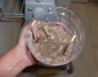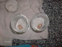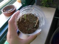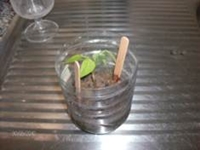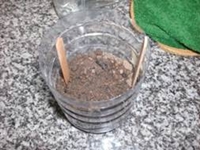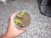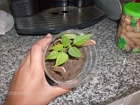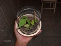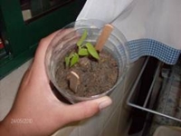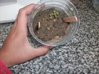 Introdução As sementes estão no interior do fruto, protegidas pelo pericarpo. Uma semente tem duas partes: o tegumento (fina película exterior, a «casca») e a amêndoa (parte interna, constituída por cotilédones e pelo embrião). Cotilédones – substâncias nutritivas necessárias para uma boa germinação (são o alimento da nova planta enquanto ela não consegue alimentar-se sozinha – fotossíntese). Embrião – germina e dá origem à nova planta, podendo distinguir~se três partes: a radícula, o caulículo e as gémulas. . Caulículo: parte do embrião que dará origem ao caule da nova planta . Radícula: parte do embrião que dará origem à raiz da nova planta. . Gémulas: parte do embrião que dará origem às folhas da nova planta. Germinação – processo pelo qual de forma uma planta a partir de uma semente. Objectivo: perceber e compreender o processo germinativo do feijão Material . 2 Recipientes de vidro . Algodão . 2 Feijões . Água . Terra . Recipiente de plástico Procedimento 1. Coloquei de molho o feijão de um dia para o outro 2. No dia seguinte, coloquei o algodão no recipiente de vidro e humedeci-o com água 3. Sobre este algodão húmido coloquei o feijão 4. Para que este tivesse todas as condições necessárias à germinação tapei-o com algodão humedecido. 5. Deixei o feijão germinar, mantendo o algodão sempre humido (por cima e por baixo) 6. Quando a raiz tinha mais de 1 cm, retirei-o do reipiente e transferi-o com cuidado para a terra que já tinha colocado no recipiente de plástico. 7. Reguei a terra com água e mantive-a sempre húmida e num sítio arejado Registo de observações