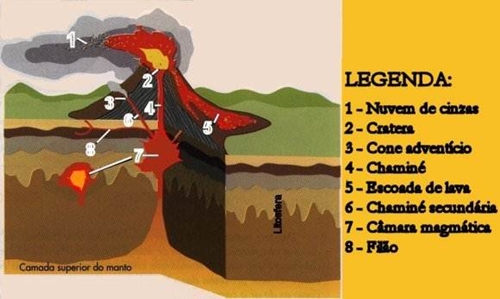 Tipos dos vulcões O número de vulcões activos (que tenham entrado em erupção nos últimos 10 mil anos) é de 1.343, a grande parte deles submarinos. A maioria dos vulcões em actividade, 82%, estão na região do Pacífico, agrupados no chamado Círculo do Fogo, uma região geologicamente muito instável. Dentre esses vulcões, destaca-se o Pinatubo, nas Filipinas, que em Junho de 1991 entrou em erupção depois de 611 anos de inactividade. Na ocasião, morreram 875 pessoas e 200 mil ficaram desabrigadas. Os vulcões podem ser classificados de acordo com o tipo de suas actividades: linear , peleana , submarina e hawaiana. Linear – São vulcões provenientes de fendas, que expelem grande quantidade de lava. As actividades desse tipo ocorrem na Islândia e na Nova Zelândia, onde em 1886 se abriu numa explosão, uma fenda de 15 km de comprimento sobre a qual se formaram inúmeras crateras. Peleana – São os vulcões que expelem grande quantidade de gases ardentes em violentas explosões, lançando lava a quilômetros de distância. O nome faz referência ao Monte Pelee, na Martinica, onde foi observada pela primeira vez uma explosão deste tipo. Os vulcões peleanos têm as erupções mais devastadoras. Entre eles estão o Vesúvio, o Etna, o Stromboli, na Itália, o Átila (Grécia) e Krakatoa (Indonésia), que na sua última erupção em 27 de Agosto de 1883, foi responsável pela maior explosão vulcânica da história. Ele lançou lava a uma altura de 55 km que, dez dias depois, caiu em forma de cinza numa distância de até 5. 330 km. A explosão devastou 163 povoados e matou 36.380 pessoas. Submarina – Ocorre no relevo submarino, quando as placas tectónicas se afastam. O derrame de lava acontece tranquilamente, já que a pressão da água impede a formação de vapores. Em 1957 foi observado uma erupção submarina no arquipélago dos Açores, na costa noroeste da África, provocando ebulição da água na região. Hawaiana – São vulcões que expelem grandes quantidades de lava, de forma ordenada e sem explosões. Têm este nome porque a região do Havaí (EUA) é a que apresenta maior concentração de vulcões deste tipo. O Mauna Loa é um dos exemplos desse tipo de vulcanismo.