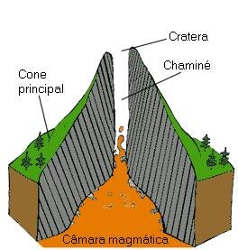 DESIGNAÇÕES de Vulcanologia Cone vulcânico: elevação de forma cónica, resultante da acumulação libertados durante uma erupção. Chaminé vulcânica: canal no interior do aparelho vulcânico, que estabelece a comunicação entre a câmara magmática e o exterior. Cratera: abertura do cone vulcânico, em forma de funil, que se localiza no topo da chaminé, formada por explosão ou por colapso da chaminé. Câmara magmática: local situado no interior da Terra, onde se acumula, que se designa magma. Nem todos os vulcões possuem esta estrutura. Por vezes, o magma ascende directamente da zona onde é formado. Cones secundários: pequenos cones vulcânicos localizados nos flancos do cone principal, alimentados pela chaminé e pela câmara magmática deste. Magma: material rochoso fundido. Lava: magma após ter perdido determinada quantidade de gases (alteração da composição química). Caldeira: forma-se por colapso ou explosão da parte superior do cone vulcânico. Se reter a água das chuvas pode formar uma lagoa. fissural: as erupções ocorrem ao longo de fracturas da superfície terrestre. Piroclastos: materiais resultantes da solidificação de lava. Cinzas: fragmentos muito finos, facilmente transportados pelo vento. Lapilli ou bagacina: pequenos fragmentos angulares arredondados que podem ser expelidos em estado sólido ou plástico (semifundido). Bombas: grandes pedaços de lava solidificada. Têm uma forma muito particular, devido ao seu trajecto aéreo.