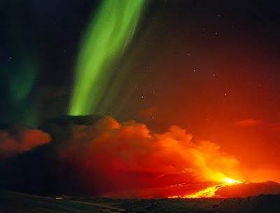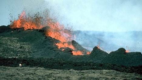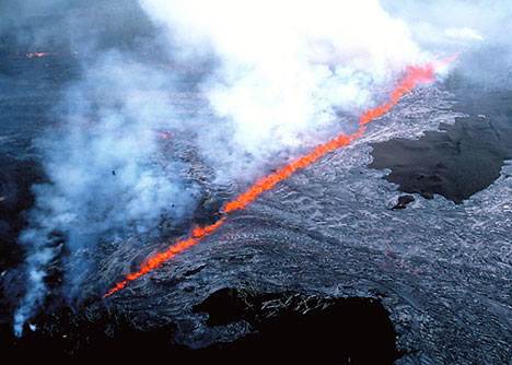 Fissura de erupção-erupção fissural gerando uma cortina de fogo