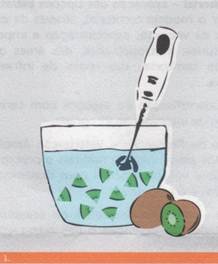 . 1 Faca . 1 Goblé . 1 Tubo de ensaio . Sal . Detergente de Louça . Água . 1 Funil . Filtro de café . 1 Varinha Mágica PROCEDIMENTO EXPERIMENTAL: 1º. Descascar e cortar o Kiwi; 2º. Triturar o Kiwi até ser uma solução líquida;